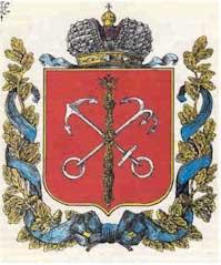 САНКТ-ПЕТЕРБУРГСКОЙ ГУБЕРНИИ ГЕРБ, высочайше утвержден 5 июля 1878, упразднен после рев-ции 1917. До утверждения по неписаной традиции губ. гербом считался герб СПб. Новый губ. герб почти не отличался от герба столицы: он лишь имел особое обрамление (элементы вокруг щита) и единственное собственно геральдическое отличие: у речного якоря изображалось не четыре лапы, как в городском, а три. Геральдическое описание губ. герба: «В червленом щите золотой императорский скипетр на серебряных косвенно накрест положенных якоре и кошке (якоре о трех концах). Щит увенчан Императорской короной и окружен золотыми дубовыми листьями, соединенными Андреевской лентой».