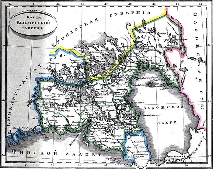 ВЫБОРГСКАЯ ГУБЕРНИЯ, историческая адм.-терр. единица в составе России и Финляндии. Занимала сев. часть Карельского перешейка, Сев. Приладожье, юго-восток совр. Финляндии. На терр. В. г. в средние века происходил этногенез карел. После Сев. войны 1700-21 земли Карельского перешейка раздавались в качестве донационных (дарственных) рус. дворянам. В. г. образована в 1744 из Выборгской и Кексгольмской провинций С.-Петерб. губ. (в XVII в. – Выборгский и Кексгольмский лены Швеции) и присоединенных по Абосскому миру 1743 частей шведской Финляндии. Состояла из уездов: Выборгского, Вильманстрандского, Кексгольмского, Нейшлотского, Сердобольского, Фридрихсгамского. В 1784, в рамках губ. реформы Екатерины II, преобразована в Выборгское наместничество, с 1796 – вновь губерния. В 1802-11 именовалась Финляндской губ. (основу нас. В. г. составляли финны). В 1811 передана Вел. княжеству Финляндскому. Это повлекло кардинальные изменения в управлении и законодательстве (Финляндия получила автономию и сохраняла законы швед. времени) и эмиграцию в Россию части рус. населения, формировавшегося с нач. XVIII в. В нач. XX в. В. г. состояла из девяти уездов (Страндасский, Кюменский, Лаппвесиский, Яскисский, Эуряпясский, Кексгольмский, Кроноборгский, Сердобольский, Салмисский); население – 455 тыс. чел. С 1918 – в составе независимой Финляндии (в прежних границах). В 1940 после Сов.-финл. войны значит. часть В. г. отошла к СССР и была передана Карело-Финской ССР и Лен. обл.: Каннельярвский, Койвистовский, Раутовский р-ны (ныне – юж. волости Выборского и Приозерского р-нов) и г. Териоки (ныне – Зеленогорск, в составе СПб.). В ноябре 1944 Лен. обл. передана сев. часть Карельского перешейка (Выборгский, Кексгольмский, Яскинский р-ны). Части бывшей В. г. принадлежат Республике Карелия (Лахденпохский, Сортавальский р-ны) и Финляндии.