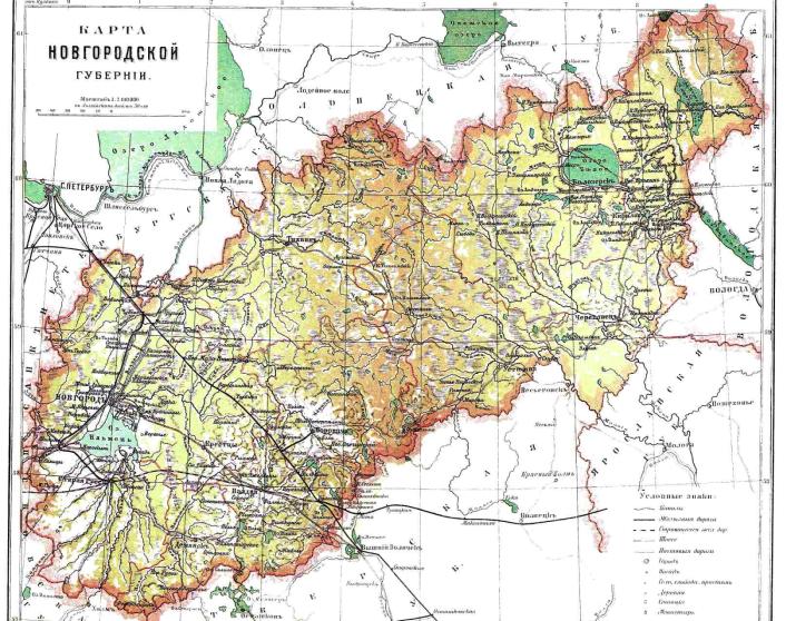 НОВГОРОДСКАЯ ГУБЕРНИЯ, адм.-терр. единица на северо-западе России в XVIII – нач. XX вв. Создана в 1727 из пяти провинций С.-Петерб. губ.: Новгородской, Псковской, Великолуцкой, Тверской и Белозерской. В первой пол. 1770-х Н. г. претерпела существенные терр. изменения. В 1776-96 преобразована в Новгородское наместничество, в 1796 вновь восстановлена. С 1802, после передачи ряда уездов из ее состава Олонецкой губ., приобрела устойчивые границы, сохранившиеся до 1918. Н. г. граничила на западе с С.-Петерб. губ., на севере – с Олонецкой, на востоке – с Вологодской, на юго-востоке – с Ярославской, на юге – с Тверской, на юго-западе – с Псковской губ. В ее состав входило 11 уездов: Белозерский, Боровичский, Валдайский, Демянский, Кирилловский, Крестецкий, Новгородский, Старорусский, Тихвинский, Устюженский и Череповецкий. Территория Н. г. на рубеже XIX–ХХ вв. составляла 118,5 тыс. кв. км, население (по данным переписи 1897) – 1367 тыс. чел. В 1918 из Н. г. были выделены пять сев.-вост. уездов, составивших Череповецкую губ. На оставшейся терр. располагались Боровичский, Валдайский, Демянский, Крестецкий, Новгородский, Старорусский и доп. созданный Маловишерский у. В XIX – нач. ХХ вв. на терр. современной Лен. обл. находились земли Новгородского, Тихвинского и Устюженского у. Новгородской губ.