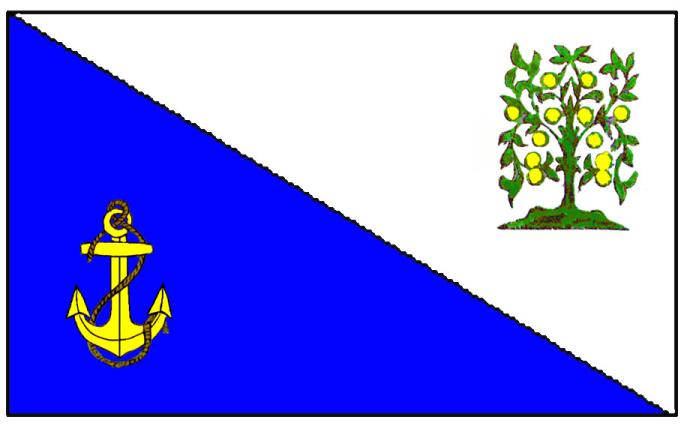 ЛОМОНОСОВСКОГО РАЙОНА ГЕРБ И ФЛАГ. Утверждены пост. Главы МО «Ломоносовский район» от 16 мая 2000 № 224. Геральдическое описание герба: «В серебряном и лазоревом скошенном справа поле, меч положенный в перевязь, имеющий червленую рукоять, украшенную золотом, и в червленых ножнах, также украшенных золотом. Меч сопровожден в серебре зеленым с золотыми плодами померанцевым деревом на отвлеченной зеленой земле, в лазури – золотым якорем». Этот герб (г. Ораниенбаум) высочайше утвержден 7 мая 1780. Флаг представляет собой прямоугольное полотнище с отношением выс. к дл. 2:3, разделенное по диагонали от верх. угла у древка к ниж. углу от древка на две части: белого (вверху) и синего (внизу) цветов. В белой части – зеленое дерево с желтыми плодами на зеленой земле; в синей – желтый якорь с обвитым вокруг него желтым канатом. Герб внесен в Гос. геральдический регистр РФ под № 747, флаг – под № 748.