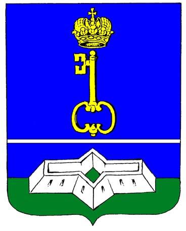 ШЛИССЕЛЬБУРГА ГОРОДА ГЕРБ. Официальный символ, утвержденный решением Собрания представителей г. Шлиссельбург (второго созыва) от 7 февр. 1997 № 2/7 «О гербе г. Шлиссельбург». Геральдическое описание герба: «В лазоревом поле пересеченная лазоревая и зеленая оконечность, тонко окаймленная серебром и обремененная серебряной четырехугольной вытянутой в пояс крепостью, имеющей впереди и позади по одному треугольному бастиону, с зеленым двором посередине. Над оконечностью золотой ключ в столб, обращенный бородкой вправо и сопровожденный во главе золотой императорской короной без лент». Герб составлен между авг. 1724 и июнем 1727 товарищем герольдмейстера гр. Ф.М. Санти на основании сенатского указа 1724. Утвержден имп. Анной Иоанновной 3 марта 1730, подтвержден сенатским указом от 8 марта 1730. 7 мая 1780 подтвержден имп. Екатериной II. 7 мая 1857 переутвержден имп. Александром II с нек-рой доработкой: введено отделение оконечности серебром, зеленый цвет в оконечности, введено в общем порядке статусное обрамление. Герб внесен в Гос. геральдический регистр РФ под № 148.
