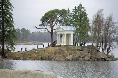 МОНРЕПО, усадьба. (г. Выборг, на берегу Защитной бухты Выборгского зал. в сев.-зап. части о. Твердыш). Устройство парка на о-ве началось в 1760, когда эта местность стала имением воен. коменданта Выборга П.А. Ступишина. Для этого голые скалы были покрыты слоем плодородной земли и высажены лиственные деревья. Название (от mon repos (фр.) – «мой отдых») было дано усадьбе уже новым владельцем – принцем Фридрихом Вюртембергским, наместником Выборга в 1784-88. При нем был построен дерев. усадебный дом, продолжались работы в парке. В 1788 право на владение имением приобрел президент СПб. АН А.Л. Николаи. Последние 17 лет жизни он провел в М., здесь и похоронен в фамильном склепе. При след. владельце дипломате П.А. Николаи в 1820–1830-е М. достигло расцвета. Появились декорат. сооружения (ок. 70-ти), украсившие ансамбль (в частности, гранитный обелиск на скале). Усадебный дом перестраивался в 1820 в стиле рус. классицизма по проекту Ж. Мартинелли. В центральной гостиной находился 56-метровый живописный плафон «Марс и Венера» работы неизв. итал. художника XVIII в. (похищен в нач. 1970-х); славилась коллекция живописи, скульптуры и старинного оружия. Во флигеле располагалась уникальная б-ка из 9 тыс. тт. (ныне в Хельсинкском ун-те). Редкое сочетание мор. ландшафтов, скалистых бухт и декорат. построек привлекало в М. мн. ценителей. О М. писали М.В. Севергин, А.П. Керн, Я.К. Грот и мн. др. Среди сохр. достопримечательностей: дерев. готические ворота (1830, арх. К. Энгель; воссозданы в 1982); замок Людвигштайн на о-ве; Храм Нептуна (1820-е, арх. А.И. Штакеншнейдер; воссоздан в 1990-е), источник «Нарцисс», колонна Павла I. В 1944 в М. разместился воен. госпиталь, в конце 1940-х – дом отдыха, в 1966-88 использовался как гор. парк. Начатая в 1973 работа по реставрации усадебного дома не завершена. С 1988 – гос. ист.-архит. и природный музей-заповедник «Парк Монрепо».
