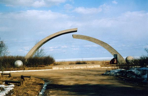 «РАЗОРВАННОЕ КОЛЬЦО», мемориал в составе «Зеленого пояса славы» на зап. берегу Ладожского оз. Сооружен в 1966 трудящимися Калининского р-на Ленинрграда восточнее дер. Ваганово, у Вагановского спуска, где начинался сухопутный участок «Дороги жизни». Открыт 29 окт. 1966. Над проектом работал коллектив авторов: арх. В.Г. Филиппов, скульп. К.М. Симун и В.Т. Дугонец, худ. В.Н. Яковлев и инж.-конструктор И.А. Рыбин. Композиция пам. представляет собой две жел.-бетон. полуарки выс. 7 м и весом 32 т. Арки символизируют кольцо блокады, разрыв между ними – «Дорогу жизни». На бетонном основании конструкции – следы автомоб. шин, уходящие в сторону воды. Вблизи мемориала расположены два жел.-бетон. шара, имитирующие прожектора. Рядом установлено подлинное 85-мм зенитное орудие, к-рое служит напоминанием о том, что в годы войны у спуска располагалась зенитная батарея.