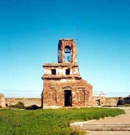 ИОАННА ПРЕДТЕЧИ РОЖДЕСТВА СОБОР (г. Шлиссельбург, о-в Орешек). В XV в. в крепости Орешек (см. Шлиссельбургская крепость) действовал муж. Николаевский Ляликин мон., исчезнувший в годы швед. владычества. До 1568 на Корельской стороне (местность на правом берегу Невы в р-не ст. Петрокрепость) построена дерев. ц. Св. Иоанна Предтечи. После 1599 она не упоминается, вероятно, уничтожена шведами. Существовавший в крепости собор Спасителя после сдачи Орешка шведам в нач. XVII в., вероятно, был обращен в лютеранскую ц. После взятия крепости рус. войсками в окт. 1702 он обращен в правосл. храм. Тогда же обретена ставшая гл. святыней собора Казанская икона Божией Матери. Петр I неск. раз присутствовал в Шлиссельбурге на праздновании дня взятия крепости и принес в дар храму, освященному в честь Рождества Св. Иоанна Предтечи, крест с частицами мощей св. Андрея Первозванного и др. святых. Кам. собор на месте прежнего храма построен в 1776-79 (арх. А.Ф. Вист). С 1802 не действовал, в 1822 разобран. Новый кам. собор в стиле классицизма возведен в 1826-31 (арх. А.Е. Штауберт). К осн. объему с плоским куполом пристроена четырехъярусная колокольня с высоким шпилем. До 1917 использовался как гарнизонный и тюремный храм. Закрыт в конце 1917, использовался под склад. В 1941-43 был занят частями сов. гарнизона, оборонявшего крепость от немцев. Сильно пострадал от обстрелов и бомбардировок. Сохраняется в руинах в качестве пам. ВОВ.