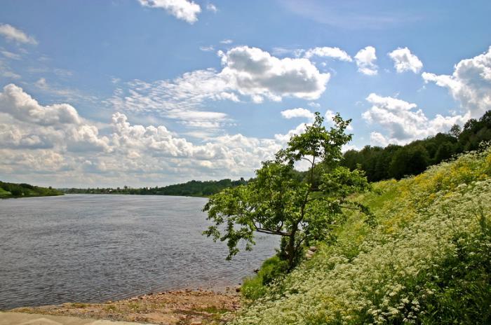 ВОЛХОВ, река. Вытекает из оз. Ильмень в Новгородской обл., проходит по терр. Киришского и Волховского р-нов Лен. обл. и впадает в Волховскую губу Ладожского оз. Дл. 224 км, в т.ч. в пределах Лен. обл. – 112 км. Шир. русла колеблется от 100 до 200 м, в устье – до 600 м. Пл. водосбора 80,2 тыс. кв. км. Сток – 552 куб. м/сек., подвержен сильным колебаниям. В верховье течет по Приильменской низменности, в ср. части – в широкой затопляемой пойме, от дер. Пчева (Киришский р-н) до с. Старая Ладога – в высоких крутых берегах. Река мало извилиста, судоходна на всем протяжении. Топоним имеет славянское происхождение (от имени Волхв или от ольхи). В ср. века по В. проходил торг. путь «Из варяг в греки». Судоходство по В. затрудняли пороги: Ладожские (у дер. Вельца Волховского р-на тянулись на 11 км, делились на верхние – Велецкие и нижние – Петропавловские) и Пчевские (у дер. Пчева, тянулись на 6 км). Для прохода через пороги нанимались лоцманы – крестьяне местных дер. Гостинополье, Вельца, Пороги, Пчева. После стр-ва в 1926 плотины Волховской ГЭС пороги скрылись под водой. На берегах В. находятся гг. Новгород, Кириши, Волхов, Новая Ладога, с. Старая Ладога. Осн. притоки: рр. Вишера, Пчевжа, Оскуя, Тигода, Кересть, Полисть. Ладожские каналы соединяют низовья В. с Невой, Свирью.