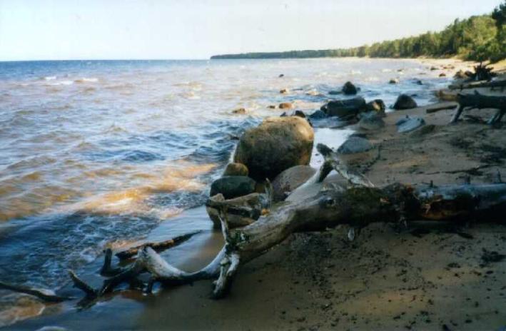 ОНЕЖСКОЕ ОЗЕРО, расположено на терр. севера Европ. части России в пределах Республики Карелия, Вологодской (юж. и юго-вост. часть) и Лен. обл. (юго-зап. часть). Побережье О. о. составляет сев.-вост. окраину Подпорожского р-на. С древности озеро известно также как Онего. Назв. предположительно происходит от прибалт.-фин. «яяни» со значением «звучащее, шумное». Терр. вокруг озера в средневековье стала называться Обонежьем и дала наим. Обонежскому ряду (позднее пятине). О. о. является вторым по пл. пресноводным водоемом Европы, уступая лишь Ладожскому оз. Оно вытянуто в направлении с северо-запада на юго-восток. Водная поверхность составляет 9682 кв. км (пл. 1369 о-вов 248 кв. км), дл. 248 км, наибольшая шир. 83 км, объем воды 292 куб. км. Ср. глубина 30 м, наиб. 127 м. В О. о. впадает ок. 50 рек и множество ручьев, вытекает одна река – Свирь, к-рая берет начало на терр. Лен. обл. и впадает в Ладожское оз. Сев. побережье озера сильно изрезано длинными заливами, здесь много о-вов; в юж. части, в том числе в Лен. обл., линия берега плавная, о-вов нет. В юж. части меньшие глубины и более сглаженный рельеф дна. Берега О. о. были освоены человеком в период неолита. На прибрежных скалах вост. побережья сохр. петроглифы того времени. Через О. о. в средневековье проходили водные пути, соединявшие Новгород и сев. земли. В нач. XIX в. по О. о. пролегла часть трассы Мариинской водной системы. Из-за частых штормов вдоль юж. и юго-вост. берегов в 1818-20 и 1845-52 был прорыт Онежский обводной кан., соединивший рр. Свирь и Вытегра. В 1964 реконструирован, стал частью Волго-Балтийской системы. До сер. ХХ в. к северу от Свири в неск. деревнях у побережья О. о. проживало вепсское нас., впоследствии обрусевшее. К югу от Свири на территории совр. Лен. обл. находились рус. поселения. В наст. время самый кр. населенный пункт на берегах озера в пределах Лен. обл. – г. п. Вознесенье (пристань при истоке р. Свирь). Вблизи побережья О. о., в Шустручейской вол. Подпорожского р-на, сохранились памятники дерев. архитектуры: ц. Дмитрия Солунского Великомученика со звонницей (1783) в дер. Щелейки, Георгиевская ц. (1781) в дер. Кипрушино и ансамбль Гиморецкого погоста (XVII в.).