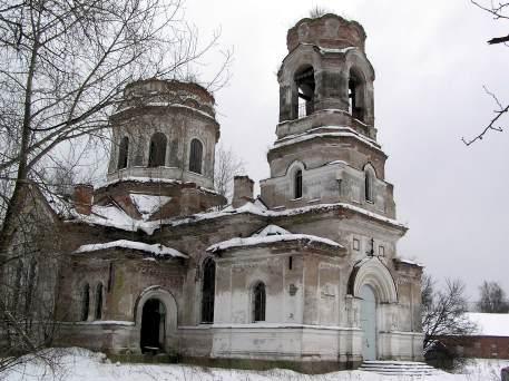 ВОЗНЕСЕНИЯ ГОСПОДНЯ ЦЕРКОВЬ (дер. Самро, Лужский р-н). Первоначальная дерев. ц. Покрова Пресв. Богородицы в старинной дер. Песье (ныне Самро) построена до 1576, после 1660 не упом. В 1737 построена дерев. ц. Воскресения Христова, к-рая сгорела в 1756. Новая дерев. ц. возведена на ее месте в 1756-57 (закрыта в 1939, разобрана в 1953). В храме хранилась чтимая икона Воскресения Христова. В 1909 возведена в стиле классицизма кам. ц. Вознесения Господня с пристроенной колокольней; приделы освящены во имя апп. Петра и Павла и Рождества Богородицы. В селе имелась часовня при ц. (закрыта в нояб. 1939). Ц. не действовала со 2 окт. 1937, закрыта 19 нояб. 1939, передана под сел. клуб. Вновь действовала с марта 1942 до нач. 1945, затем закрыта. В 1947 Леноблисполком отказал верующим в ее открытии. 26 марта 1953 пустовавшее здание передано колхозу «Красный Самряк» под склад с условием сохр. фасада. Находится в неудовл. состоянии, сохр. фрагменты интерьера.
