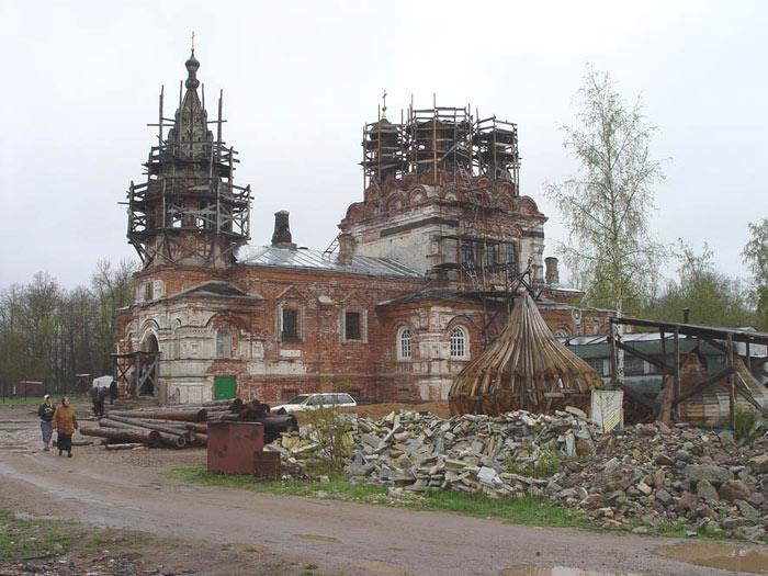 ТРОИЦЫ ПРЕСВЯТОЙ ЦЕРКОВЬ (г. Ивангород). Построена в р-не «Парусинка» на земле и на пожертвования бар. А.Л. Штиглица как приходский храм для рабочих его ф-к (суконной и льнопрядильной), а также в качестве семейной усыпальницы бар. Штиглицев. Освящена 17 авг. 1875. Рассчитана на 600 чел. Пятиглавый храм с шатровой колокольней богато декорирован в «моск.-ярославском» стиле (арх. А.И. Кракау, И.А. Стефаниц). Роспись выполнена П.Ф. Плешановым по эскизу Ф.А. Бруни, орнаменты – С.И. Садовниковым. В усыпальнице были погребены К.Л. и А.Л. Штиглицы, А.А. Половцов и его супруга Надежда Михайловна, приемная дочь Штиглицев. Храм действовал как приписной к нарвскому Преображенскому собору; в 1922-42 – самостоятельный приход. В 1935-37 худ. К. М. Коровайковым исполнены Голгофа (в наст. время – в нарвском Воскресенском соборе), образ «Положение во гроб» и плащаница. Настоятель (в 1933–42) прот. Ростислав Лозинский – просветитель, историк. Ц. закрыта в 1944. Сильно пострадала, оказавшись с 1951 в зоне стр-ва Нарвской ГЭС; разграблена в 1950-е. В 1997 зарегистрирована община, храм получил статус выявленного объекта культ. наследия. Восстановлением руководит настоятель иерей Александр Салыкин.