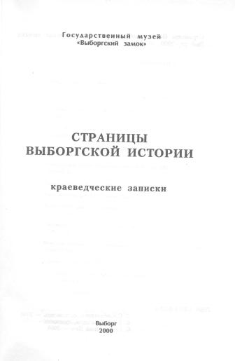Страницы выборгской истории: Краеведческие записки / Сост. С.А. Абдуллина. Выборг, 2000.