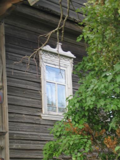 Наличник на окне традиционного жилища в деревне Пашозеро