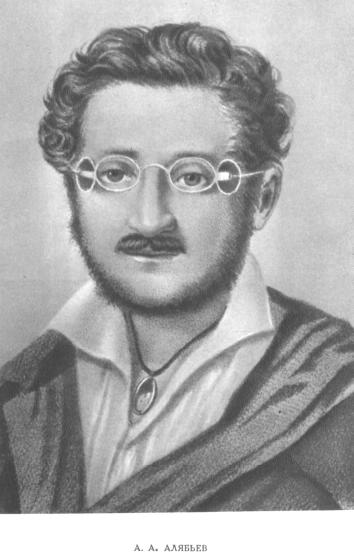 АЛЯБЬЕВ Александр Александрович (1787–1851), композитор. Закончил Университетский пансион в Москве. Автор ок. 20 опер-водевилей (ряд из них в совторстве с А.Н. Верстовским), неск. опер («Амалат-бек», «Волшебная ночь»), оперы-балета, 150 романсов («Соловей», «Из страны, страны далекой», «Зимняя дорога», «Вечерний звон»), произв. для симф. и духового оркестров, хоров и мн. др.
