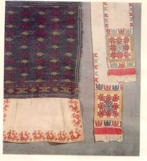 Вышивки (kirg', kirj, kird) были наиболее распространенным способом украшения текстильных изделий. Хотя на рубеже ХIХ-ХХ вв. ими украшали уже ограниченный круг изделий, в основном женские рубахи (racin, ratsin) и полотенца (kaziраik, vаrnраik), причем полотенца, как правило, лишь предназначенные для праздничного и обрядового использования. В более ранний период, в XIX в., вышивками украшались также женские головные уборы, праздничные юбки молодух (роutnаsinе juрk), мужские венчальные рубахи и штаны. Изредка, как у карел и русских, вышивали также свадебные простыни, еще реже - подзоры к кроватям.