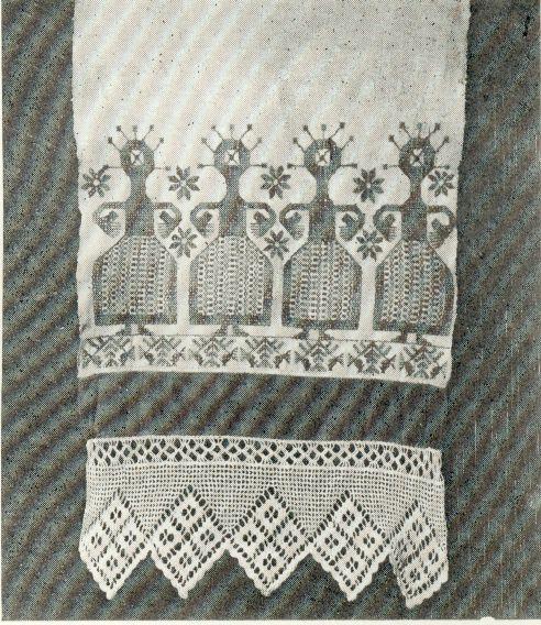 Сходные антропоморфные женские образы распространены также в вышивках соседних с вепсами народов: карел южной и средней Карелии, ижорцев и русских северо-западных областей.