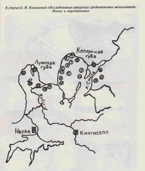 Конькова, О. И. Исследования ижорских средневековых могильников. Итоги и перспективы // Современное финно-угроведение. Опыт и проблемы : сб. науч. тр. / Музей этнографии народов СССР ; под ред. О. М. Фишмана, Е. А. Рябинина, И. В. Дубова. – Л., 1990. – С. 31–35.